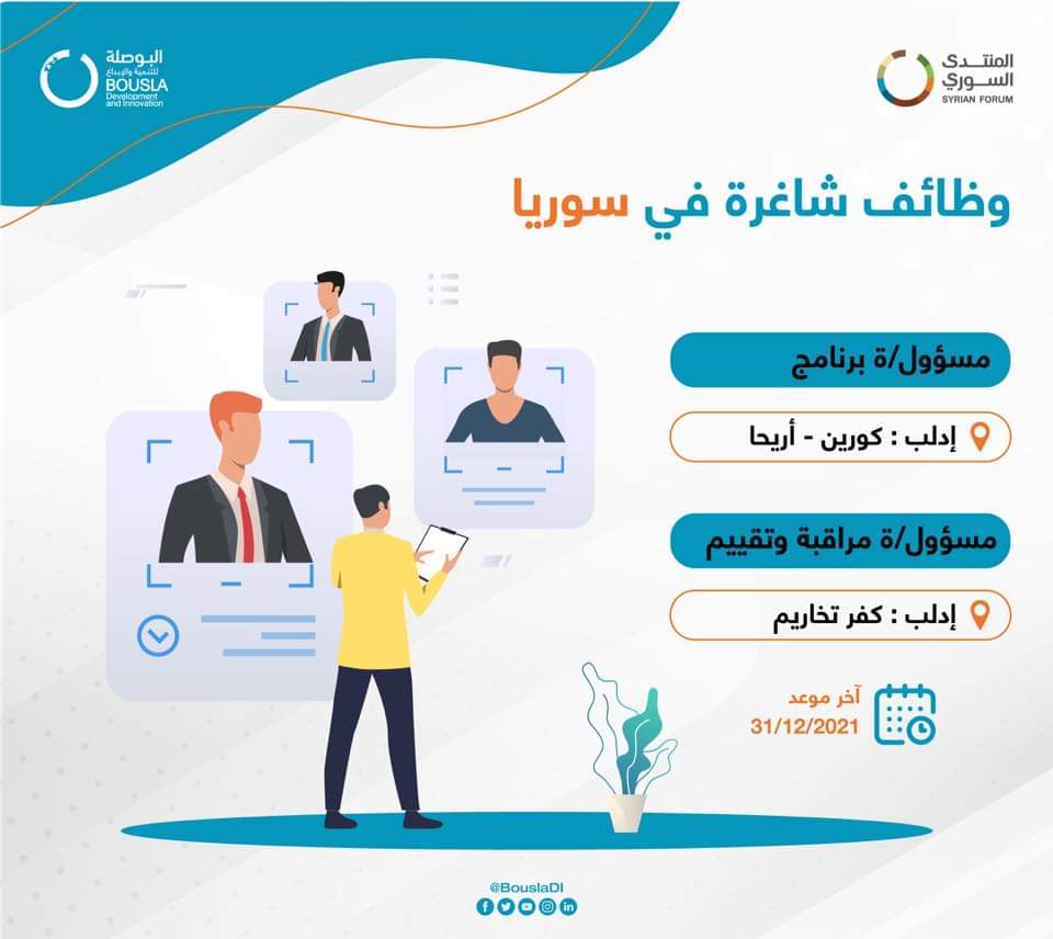ترغب البوصلة للتنمية والإبداع برفد كوادرها في سوريا بالمناصب التالية: