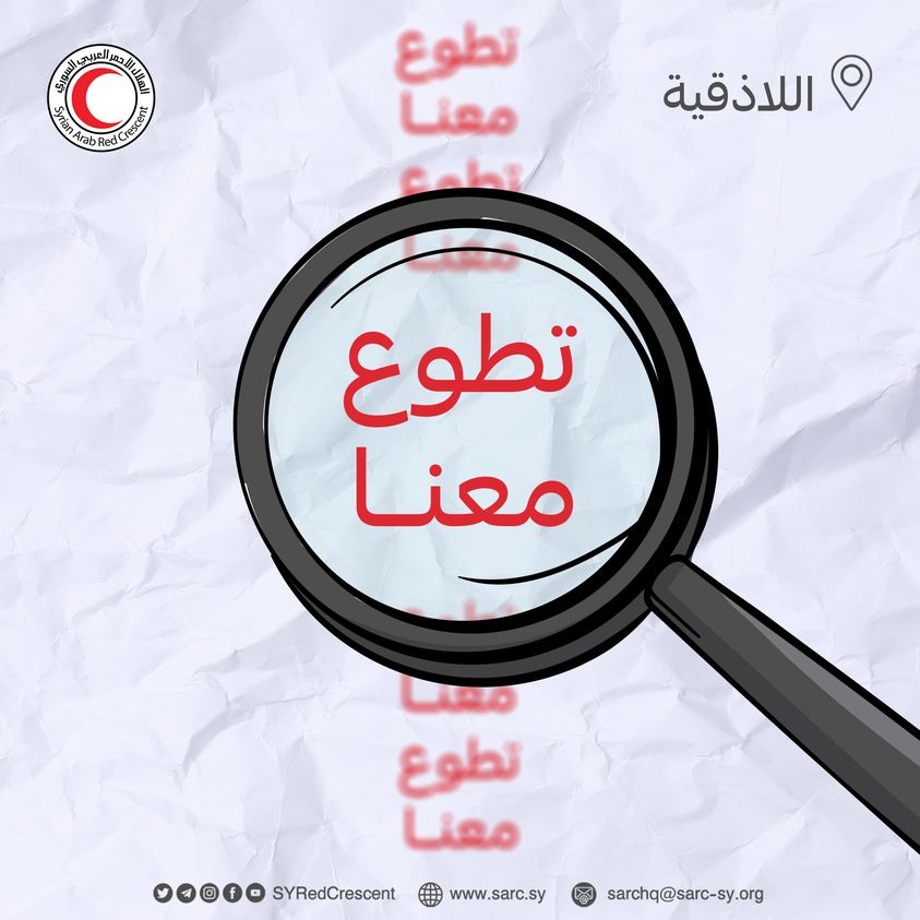 تعلن لجنة الموارد البشرية في الهلال الأحمر العربي السوري فرع اللاذقية عن توفر شاغر “متطوع/متطوعة ضمن قسم التواصل والإعلام”.