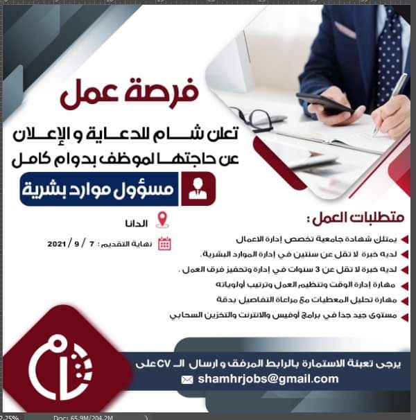 • لديه خبرة لا تقل عن سنتين في إدارة الموارد البشرية.
