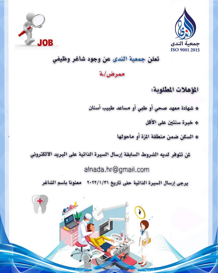 في منطقة المزة أو ماحولها ضمن المهام والمؤهلات المرفقة في الصورة أدناه :