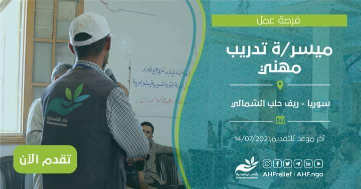 - خبرة لا تقل عن سنتين في عمل المؤسسات الإنسانية.
