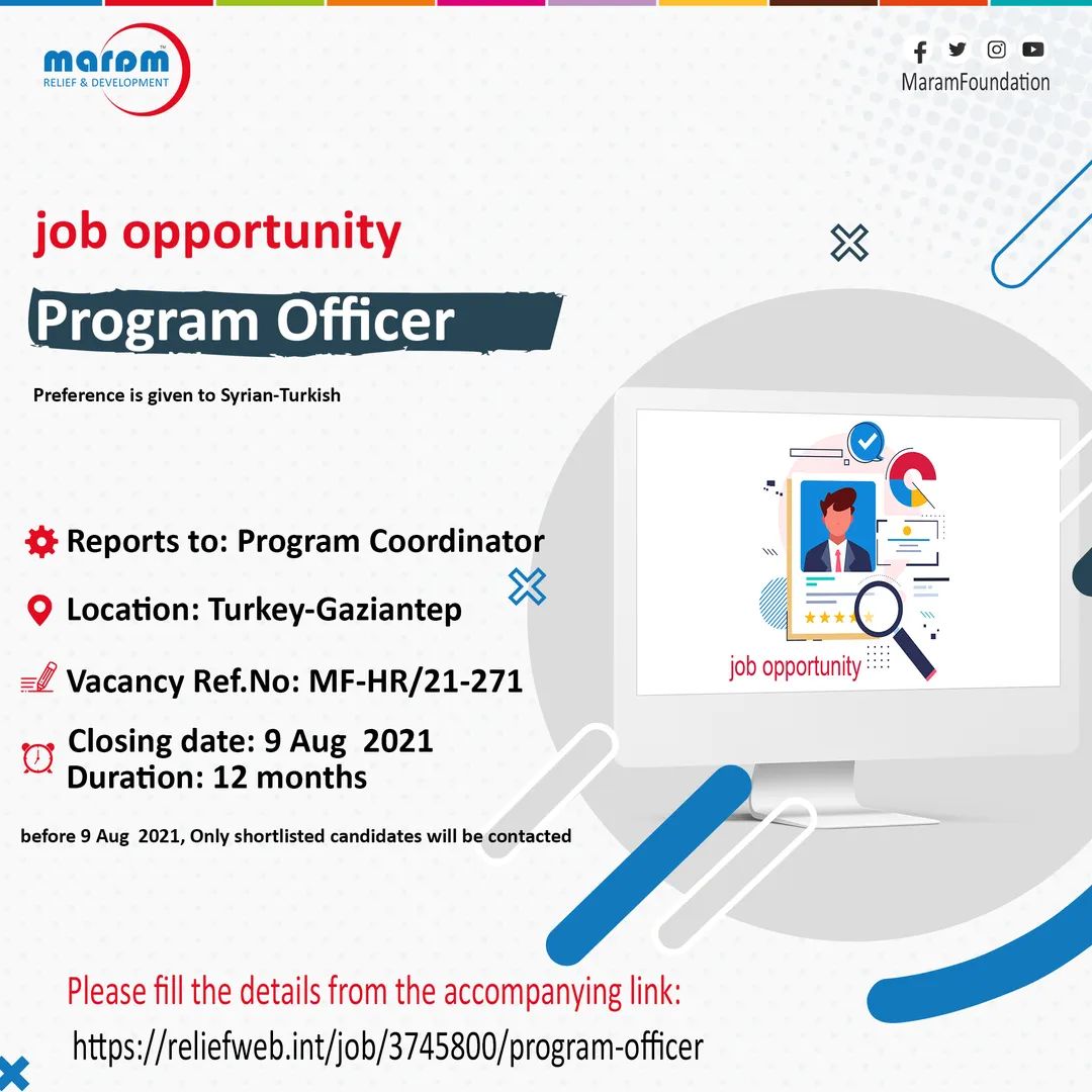 - Website :https://reliefweb.int/job/3745800/program-officer